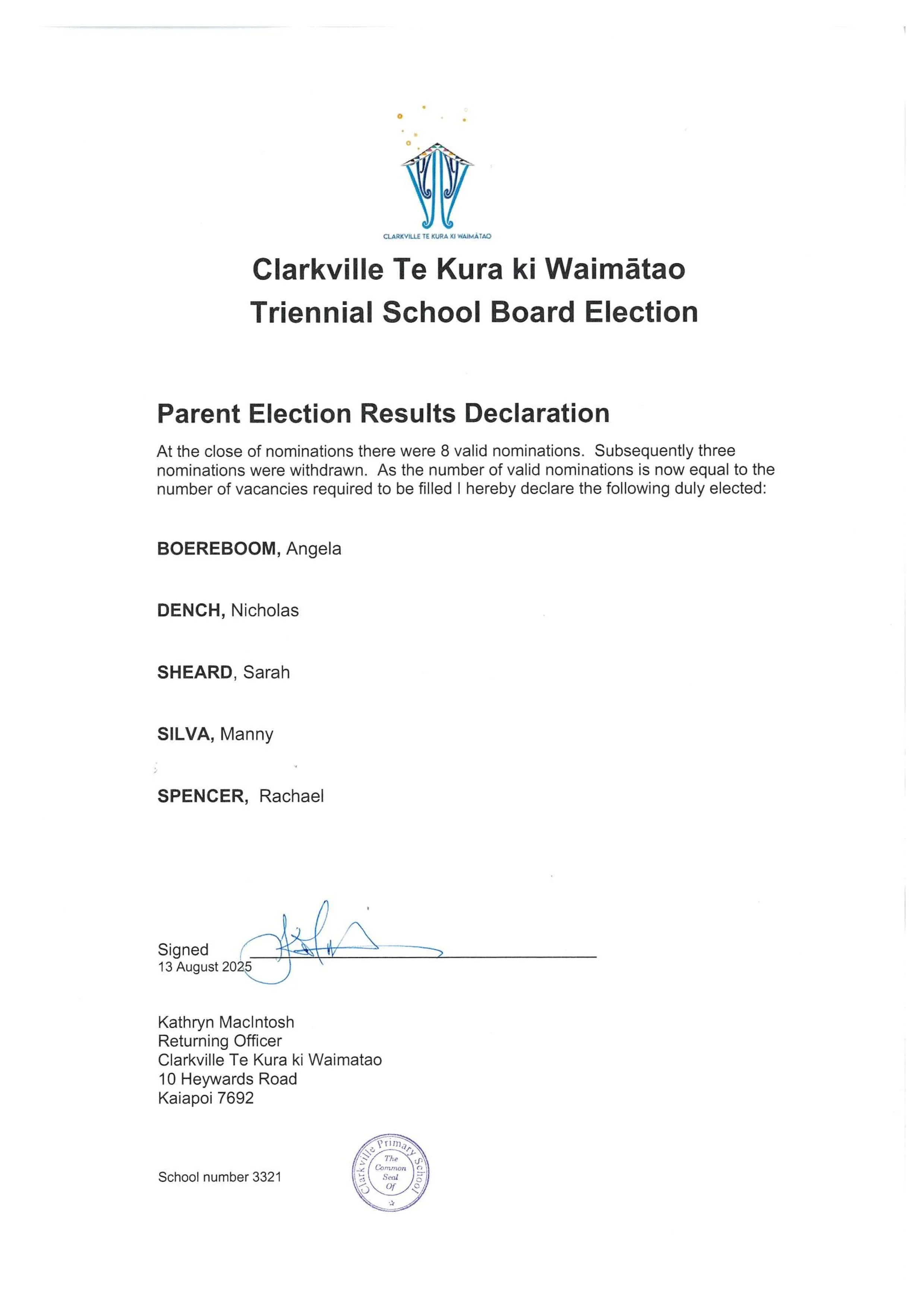 Welcome to the Board of Trustees at Clarkville Te Kura ki Waimātao. Upholding the cherished values of our school, our Board embodies collaboration, engagement, loyalty, and honesty, ensuring decisions are made with both heart and mind for the benefit of our community.